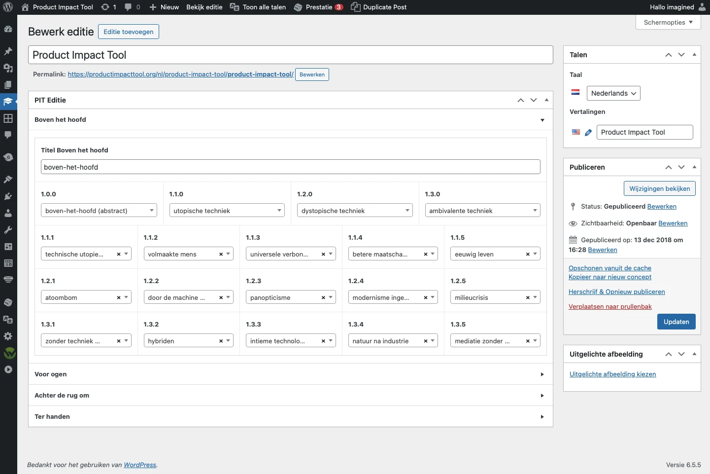 Binnen het WordPress CMS is het beheer van de tool geïntegreerd zodat het team op de manier hoe ze gewend zijn de tool kan aanpassen of nieuwe edities kan toevoegen.