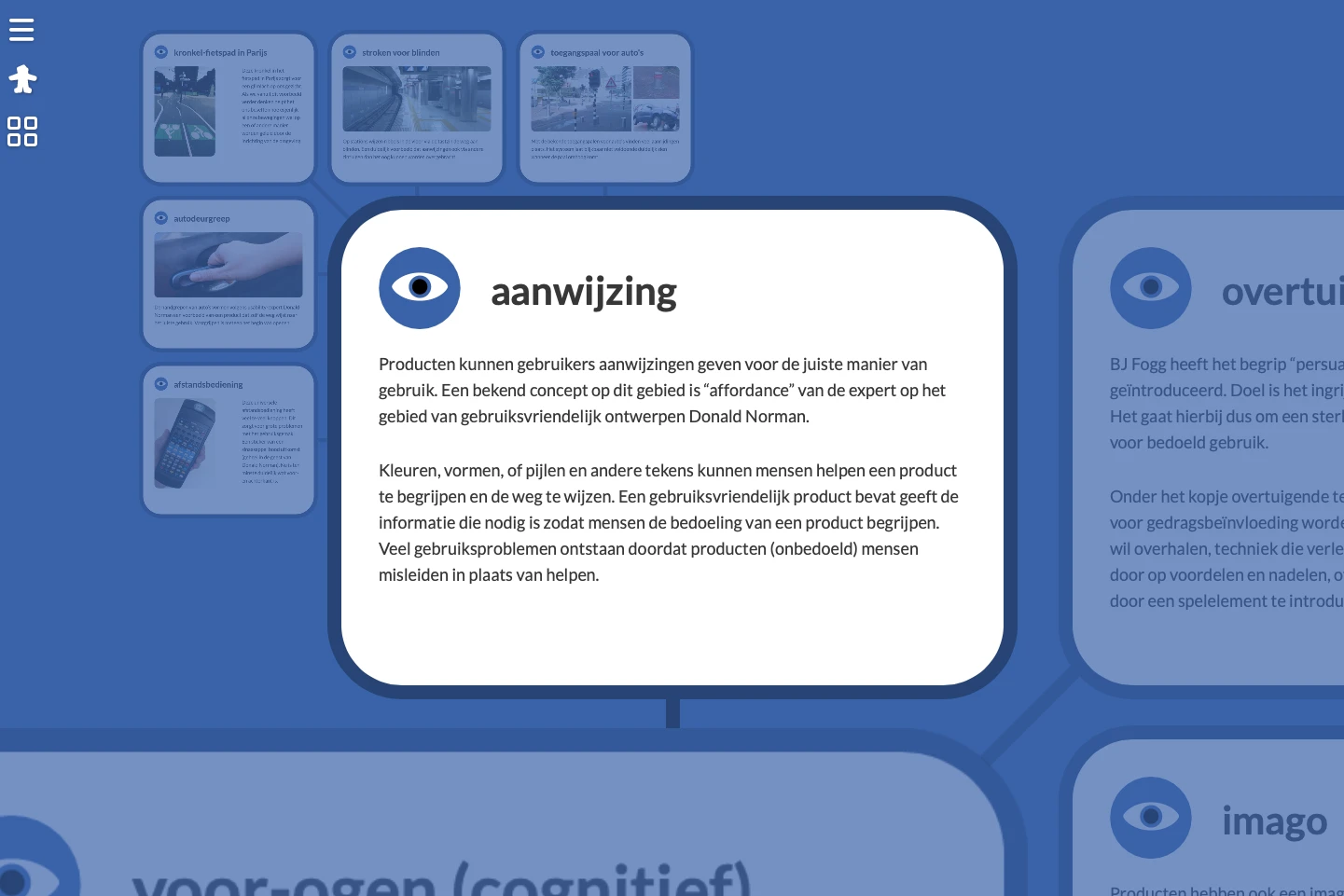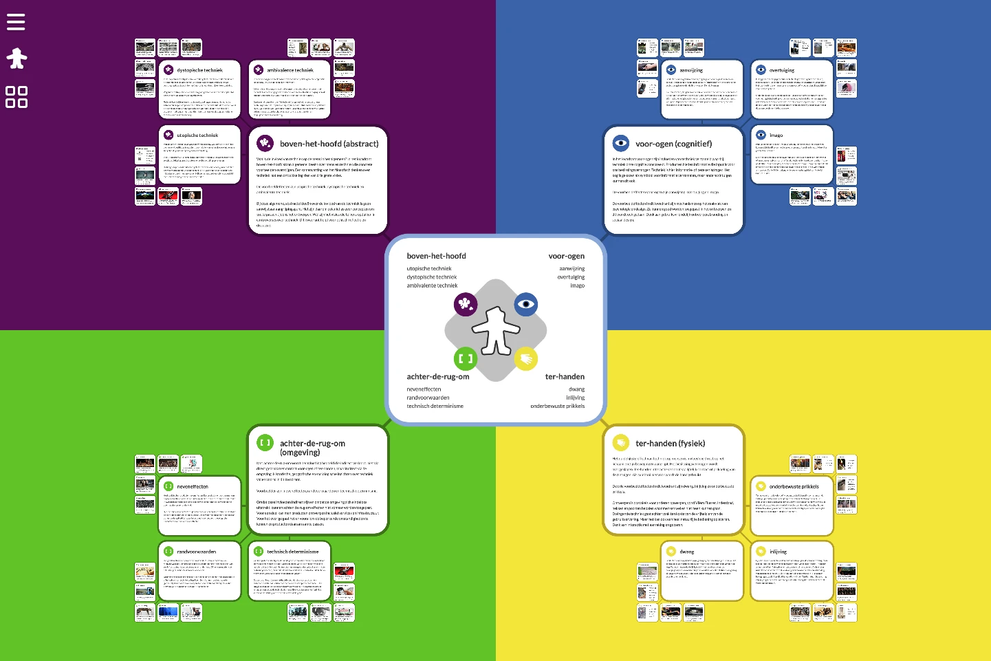 De kaarten binnen het model kunnen worden gevuld met text, afbeeldingen, video of een combinatie hiervan. De huisstijl wordt automatisch toegepast op inhoud.