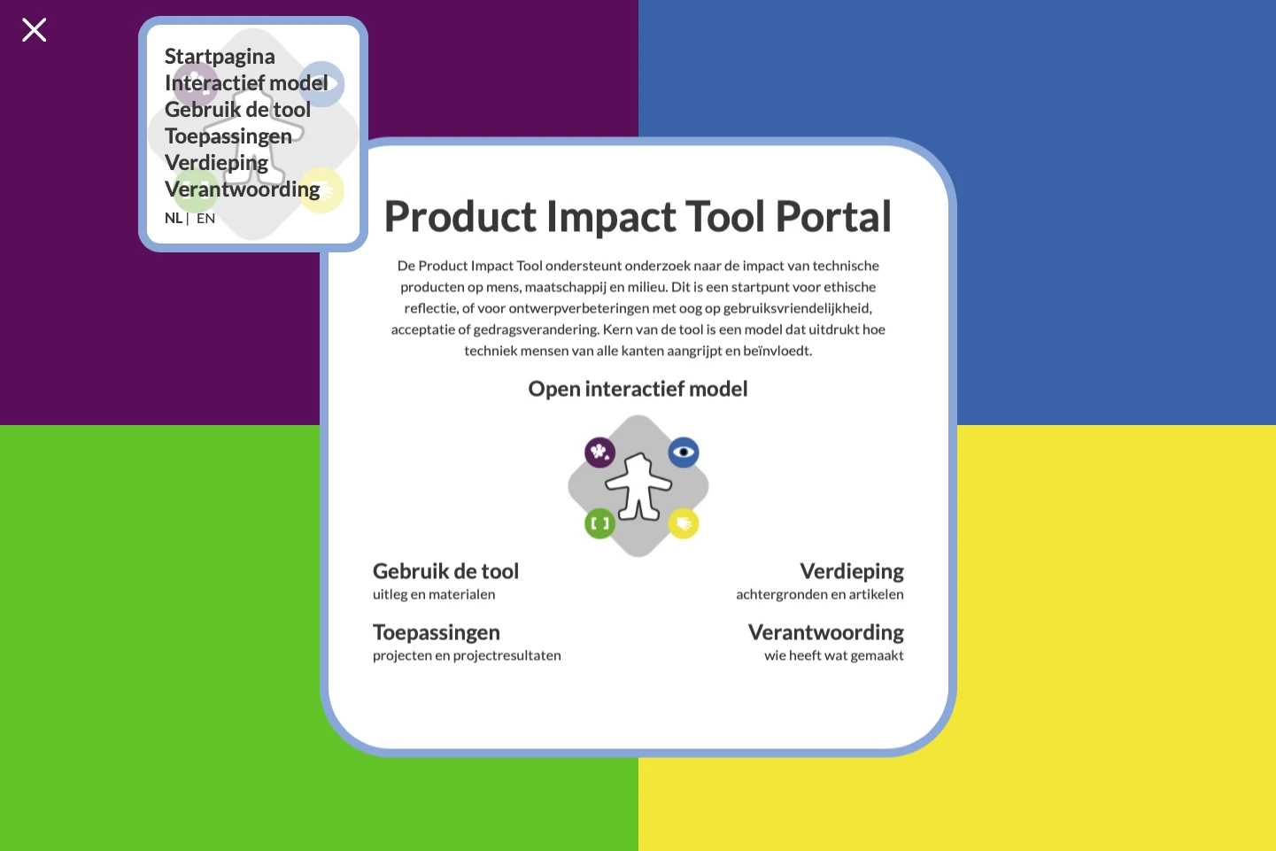 Het doel van dit project was om bij de methodiek van de Product Impact Tool een interactief model te creëren die als presentatie bij een lezing gebruikt kan worden, maar die bezoekers ook zelfstandig kunnen ontdekken. De tool is zelfstandig door het team te beheren door middel van een intergratie in het CMS.