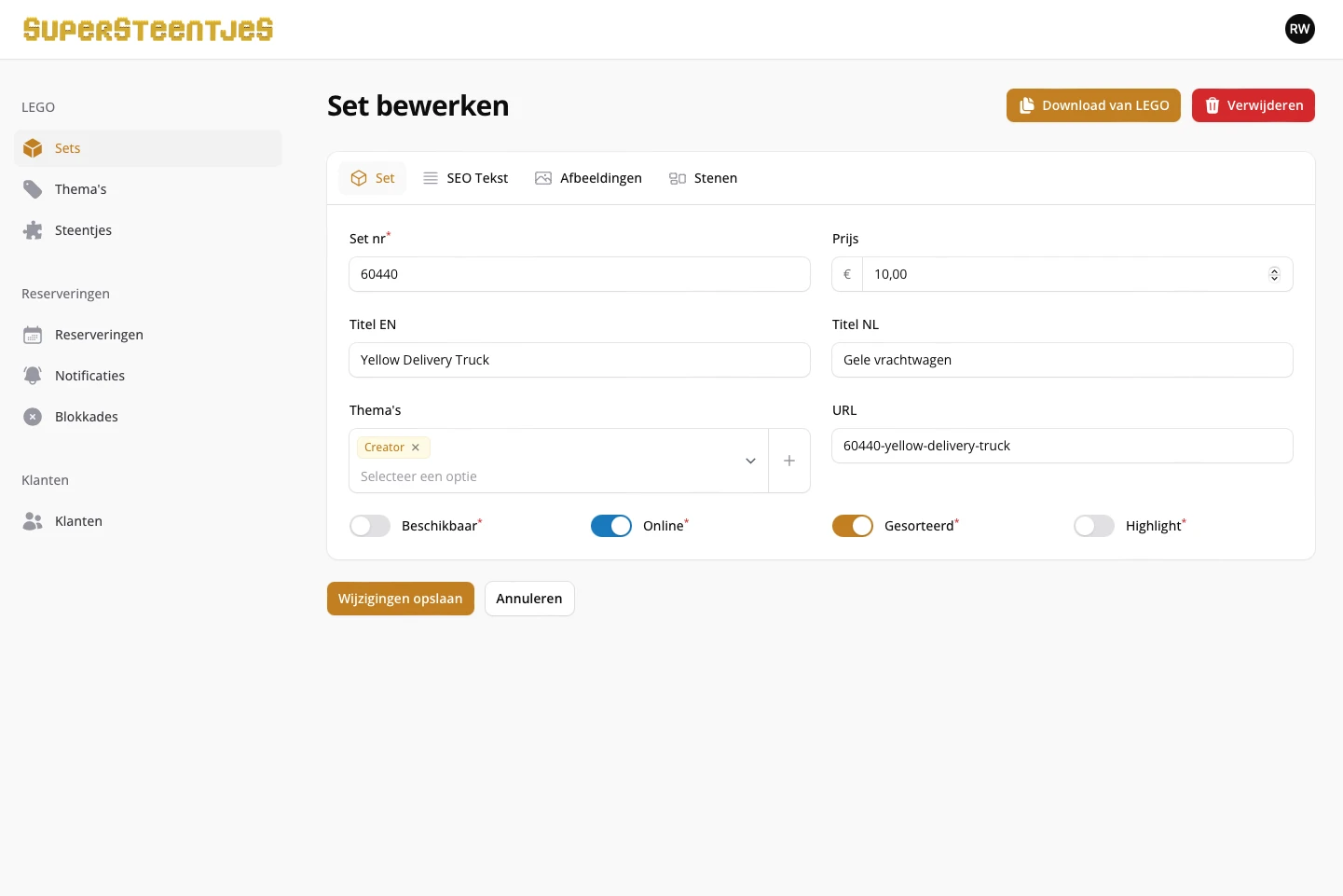 Voor Supersteentjes hebben wij een volledig nieuwe website gerealiseerd met een gebruiksvriendelijk reserveringssysteem voor de verhuur van hun producten. Daarnaast hebben we innovatieve functionaliteiten geïntegreerd zoals geautomatiseerd producten toevoeging, SEO teksten die gegenereerd worden door AI en automatische herinneringsmails naar klanten over hun reservering.